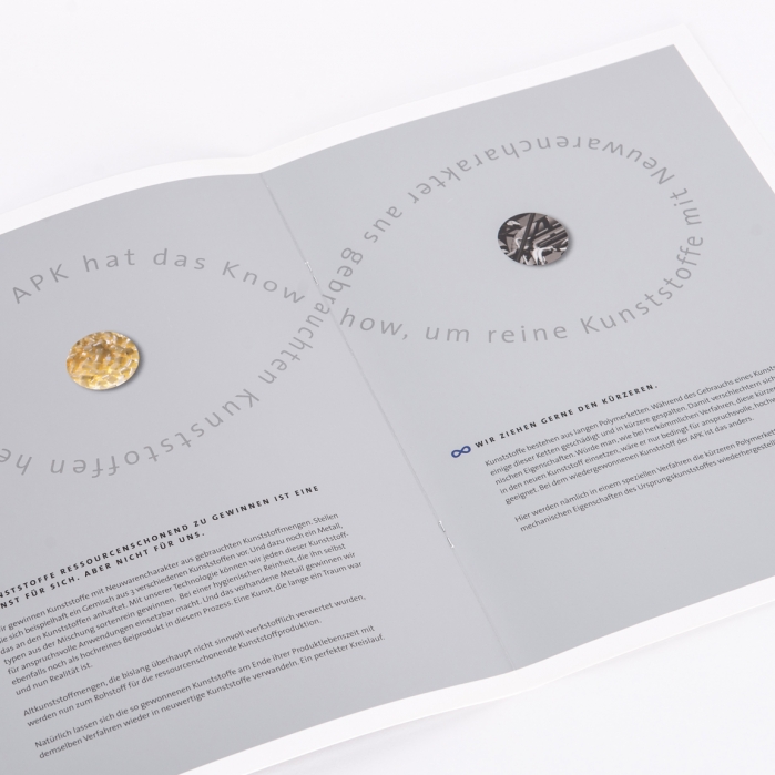 Die APK ist auf die Produktion von Kunststoffgranulaten spezialisiert. Mithilfe eines effizienten Recyclingverfahrens stellt das Unternehmen hochwertige Granulate her, die in unterschiedlichen Produktionsanwendungen eingesetzt werden.